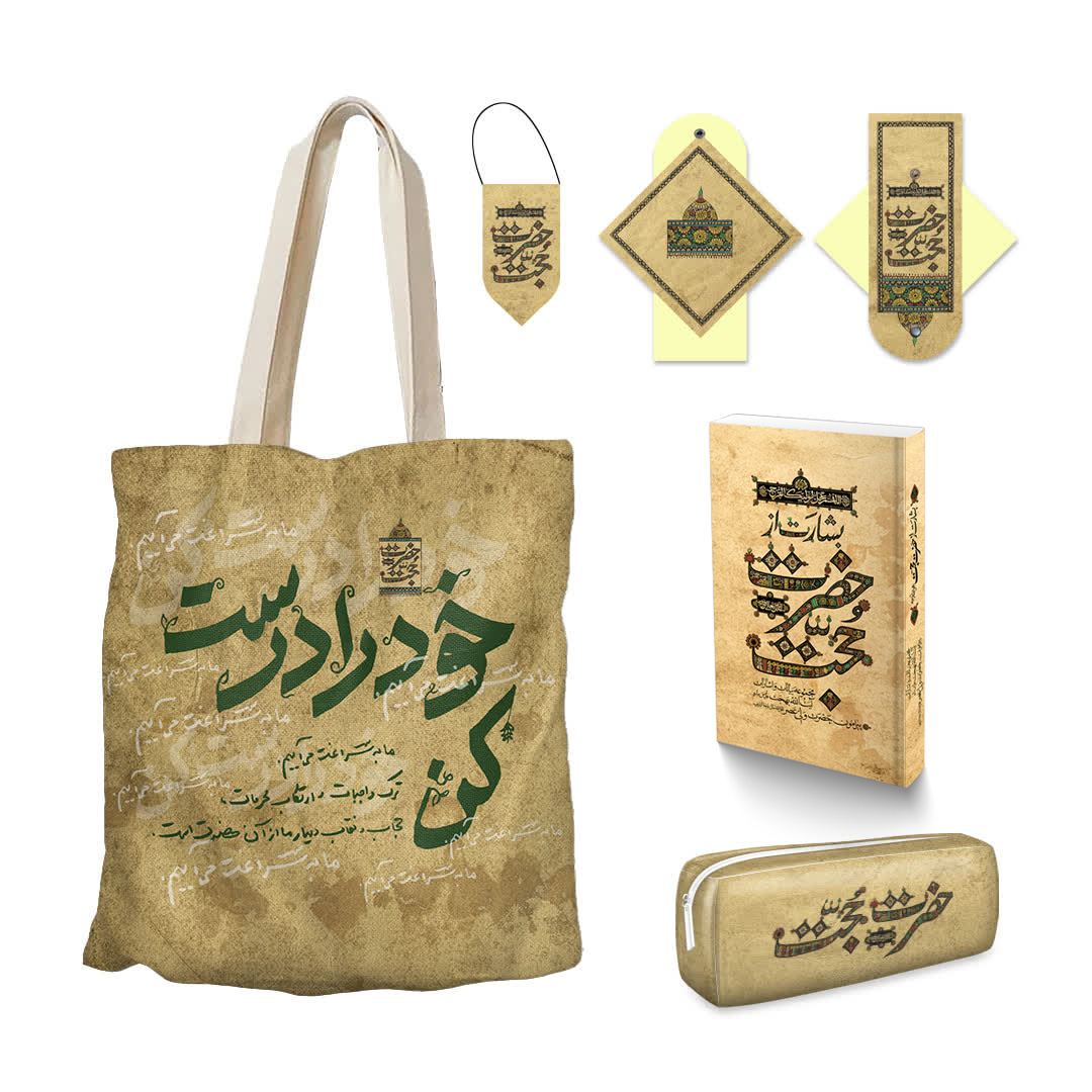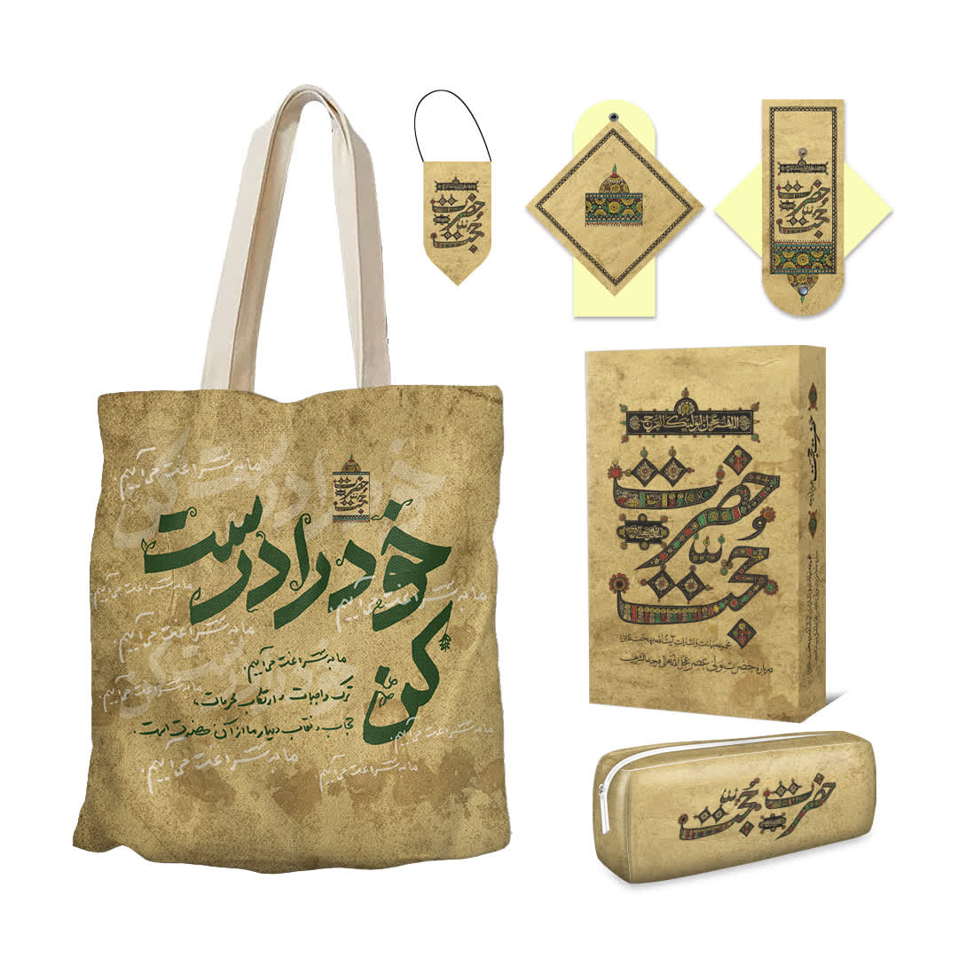 - کیف دستی (توتبگ)، جانماز کیفی، جامدادی و آویز خودرو زیبا با طراحی منحصربهفرد و برگرفته از کتاب حضرت حجت (عج)
